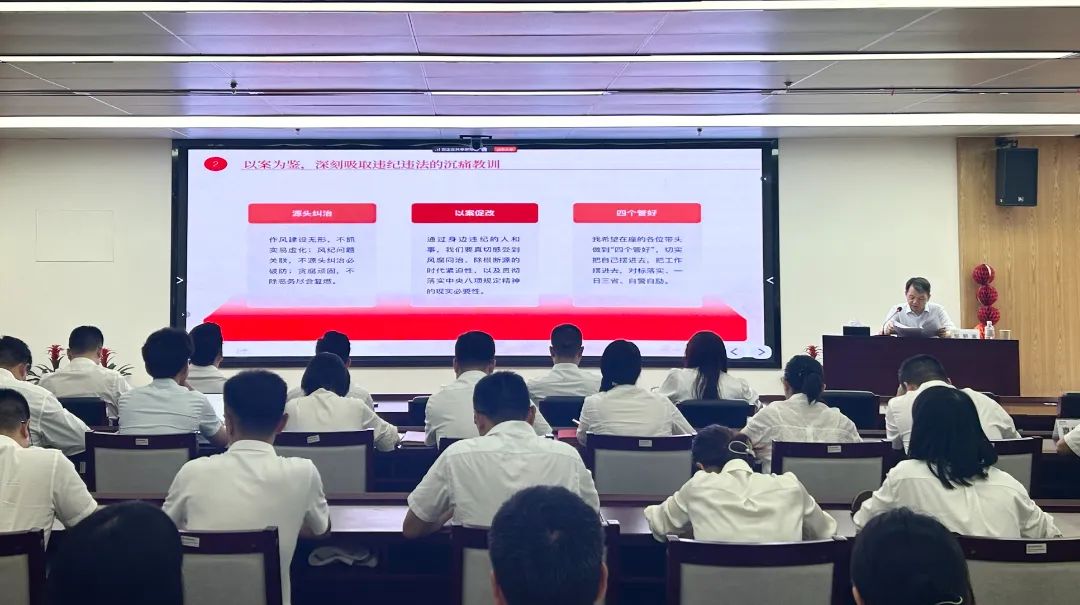 為慶祝中國共產(chǎn)黨成立104周年,扎實推動深入貫徹中央八項規(guī)定精神學(xué)習(xí)教育走深走實,7月4日下午,湖北聯(lián)投黨委委員、副總經(jīng)理鄒朝富赴明誠文體,以《清風(fēng)明紀 文潤初心 以作風(fēng)建設(shè)新成效賦能企業(yè)高質(zhì)量發(fā)展》為題,為分管單位領(lǐng)導(dǎo)干部講授專題黨課。